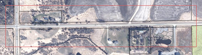 Twp. 534, RR 272 to 500m west RR 271 – Including intersection at Twp. 534 and RR 272.