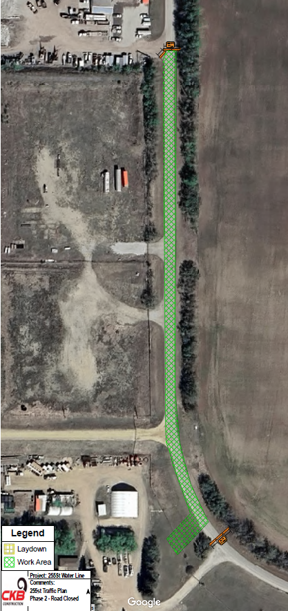 August 25, 2025: CKB Construction is set to begin mobilization for the 255 St Water Line Extension project. Single lane alternative traffic accommodations will be in place on 255 St.