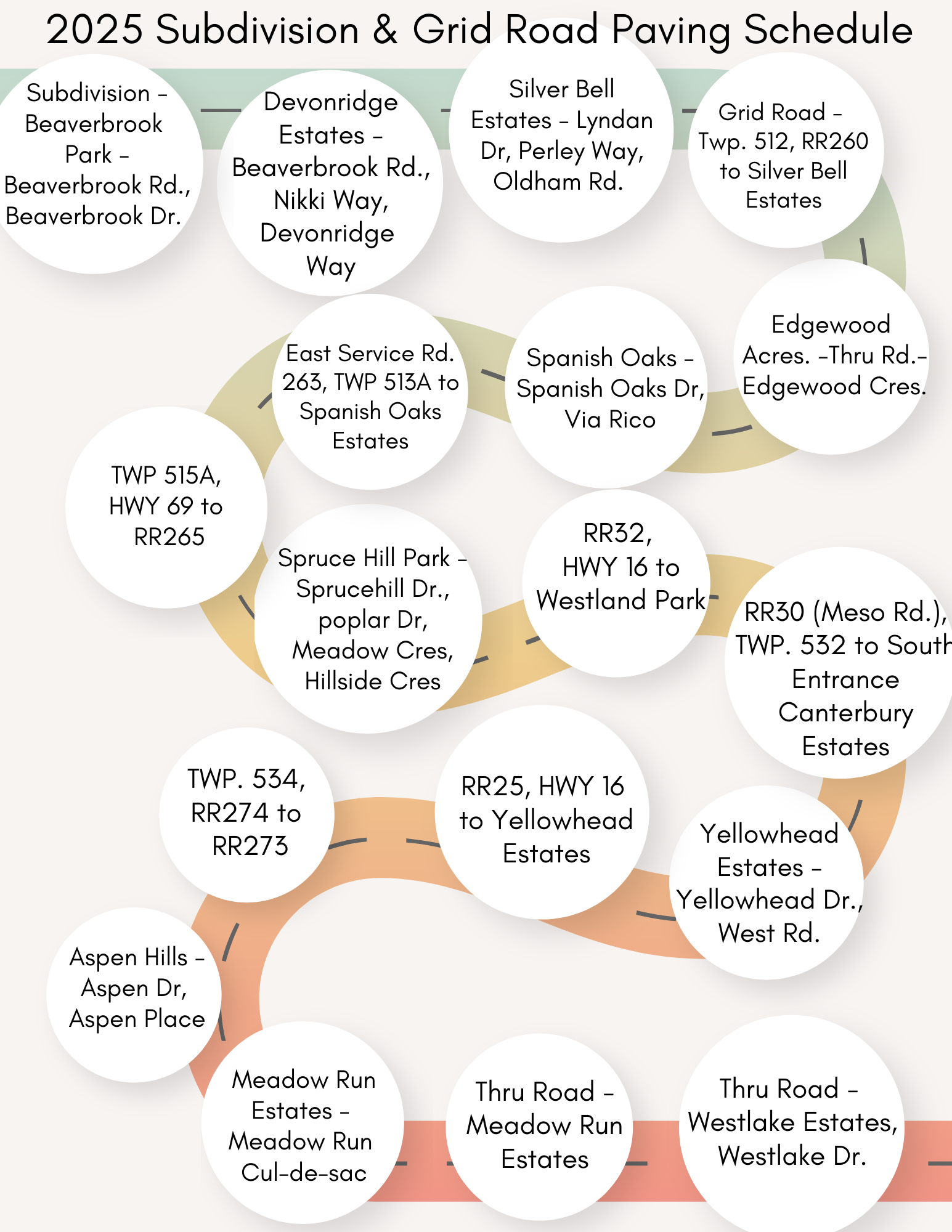 September 5, 2025: RR 25 from Hwy 16 to Yellowhead Estates and Aspen Hill Subdivision are complete.