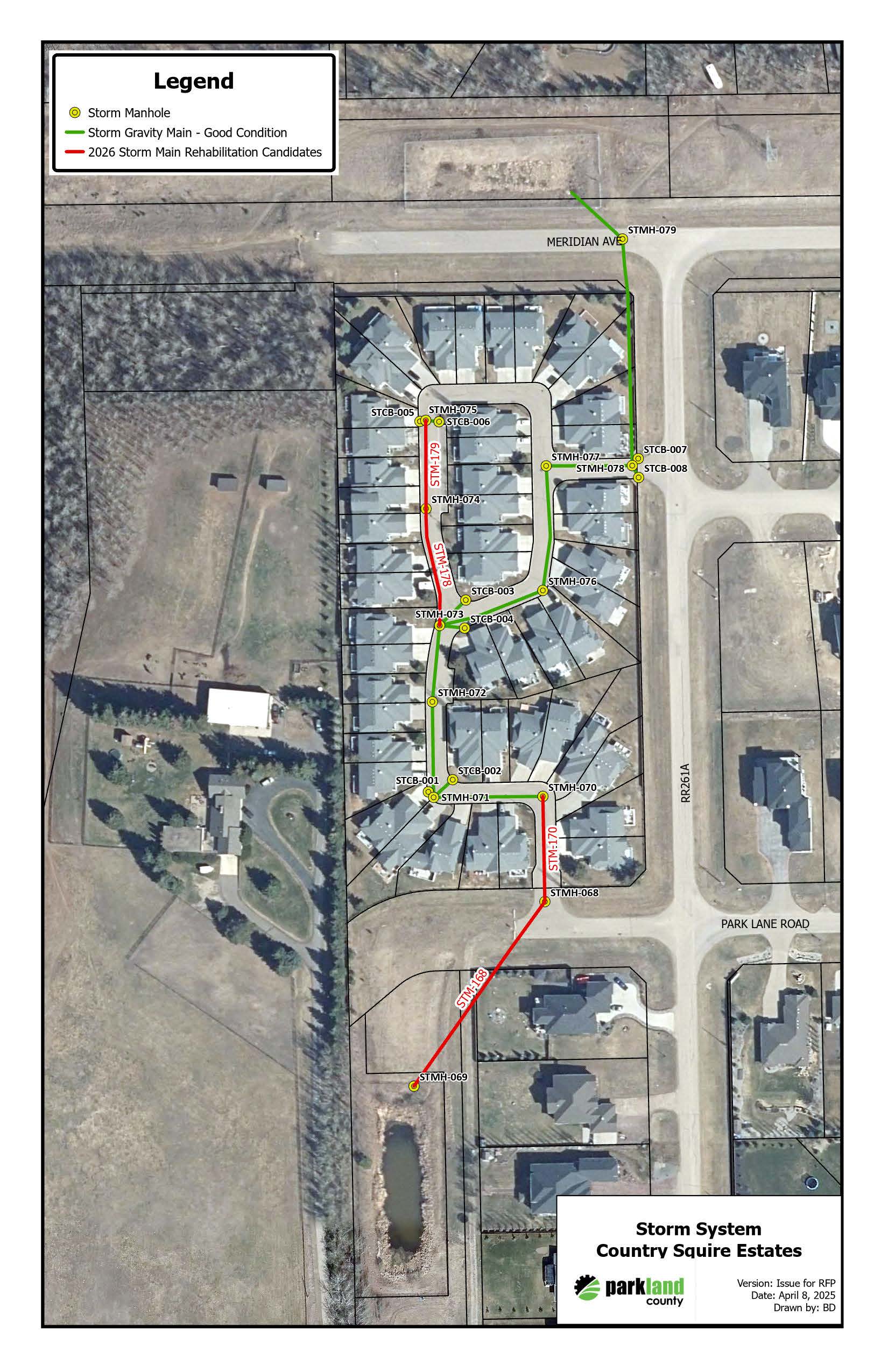 Repair several cracked storm mains in and around Country Squire Estates using trenchless lining techniques to prevent more disruptive and costly repairs in the future.